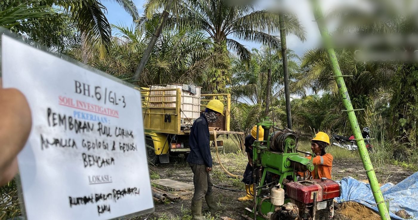 Kegiatan investigasi dilakukan di wilayah Rumbai Barat, Pekanbaru yang secara regional termasuk dalam satuan Aluvium Tua. Satuan ini tersusun oleh kerikil, pasir, lempung rawa, dan gambut dengan tingkat konsolidasi lepas hingga setengah terkonsolidasi. Karakteristik ini menunjukkan adanya variasi kondisi fisik tanah yang berpotensi memengaruhi stabilitas lahan dan respon terhadap pembebanan konstruksi.